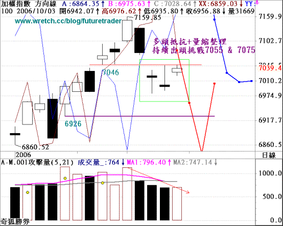 2.未突破7075以前,宜防修正6839至今7159整段漲幅,未來有機會在6980.5、6940.9、6926尋求短線支撐。